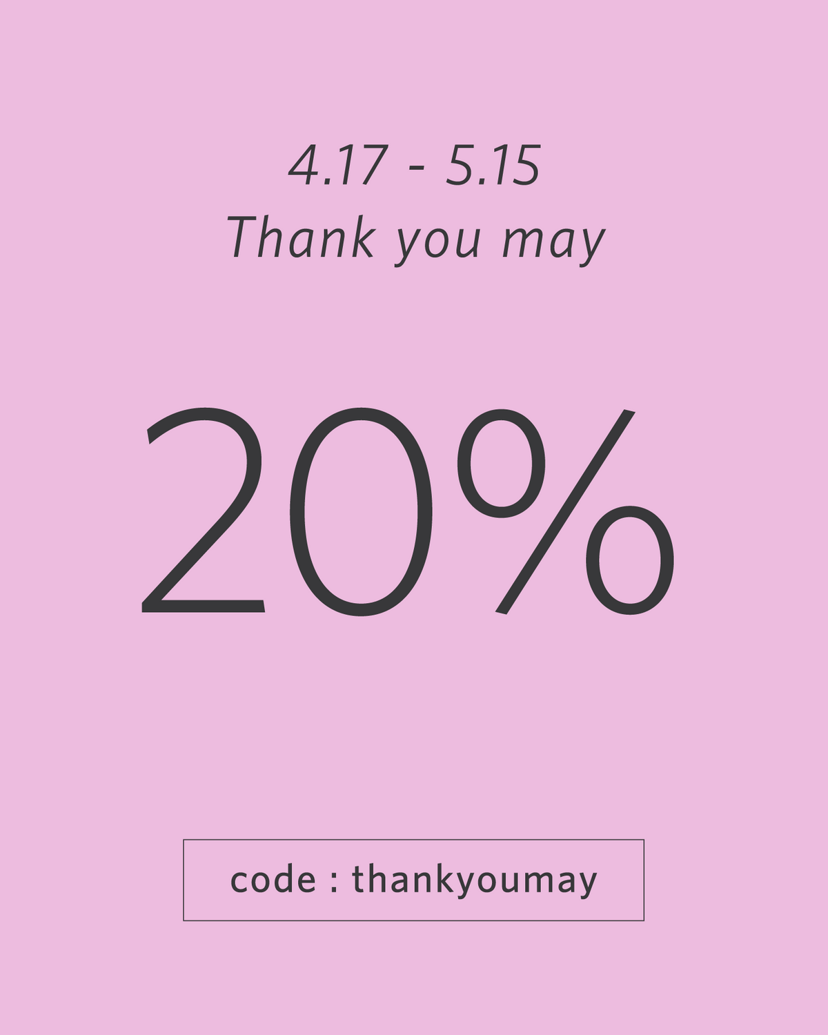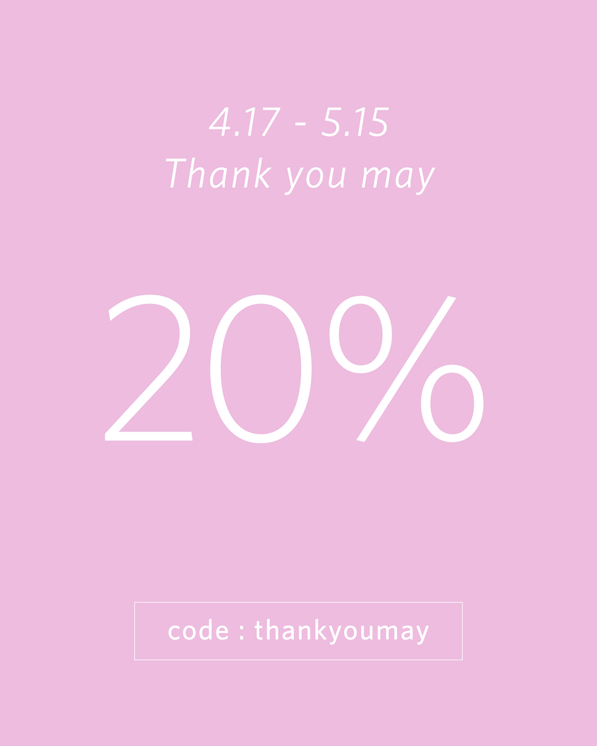 20% off Event | code : thankyoumay